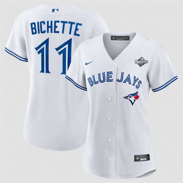 Home>MLB>Toronto Blue Jays>Women>Women Toronto Blue Jays 11 Bo Bichette White 2025 World Series Home Cool Base Stitched Baseball Jersey