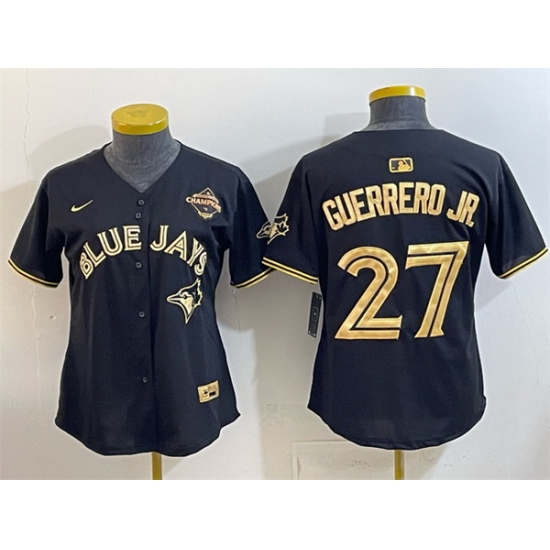 Home>MLB>Toronto Blue Jays>Women>Women Toronto Blue Jays 27 Vladimir Guerrero Jr Black Gold 2025 American League Champions Limited Stitched Baseball Jersey