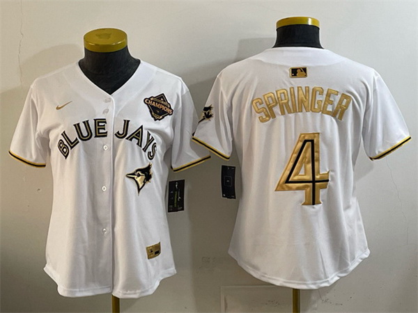 Home>MLB>Toronto Blue Jays>Women>Women Toronto Blue Jays 4 George Springer White Gold 2025 American League Champions Limited Stitched Baseball Jersey