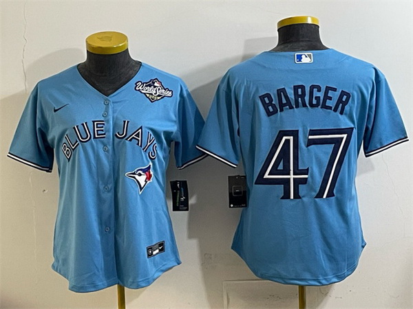 Home>MLB>Toronto Blue Jays>Women>Women Toronto Blue Jays 47 Addison Barger Blue 2025 World Series Cool Base Stitched Baseball Jersey