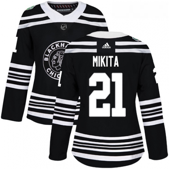 Womens Adidas Chicago Blackhawks 21 Stan Mikita Authentic Black 2019 Winter Classic NHL Jersey