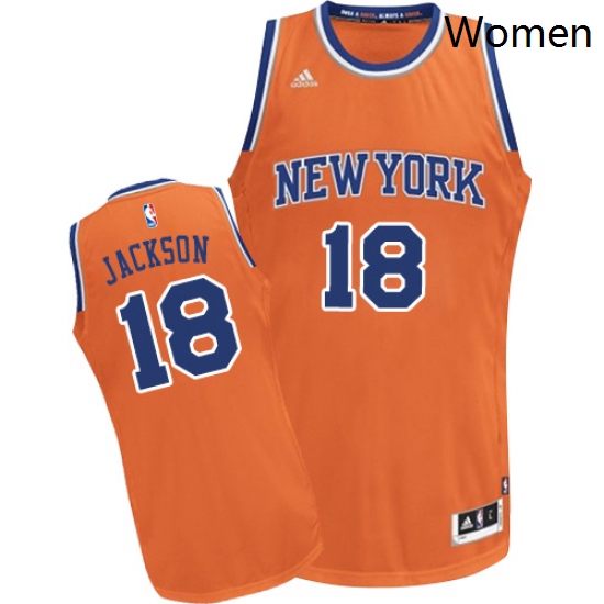 Home>NBA>New York Knicks>Women>Womens Adidas New York Knicks 18 Phil Jackson Swingman Orange Alternate NBA Jersey