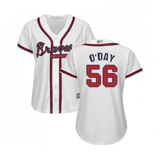 Womens Atlanta Braves 56 Darren O Day Replica White Home Cool Base Baseball Jersey