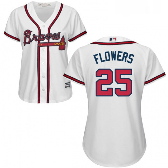 Home>MLB>Atlanta Braves>Women>Womens Majestic Atlanta Braves 25 Tyler Flowers Authentic White Home Cool Base MLB Jersey