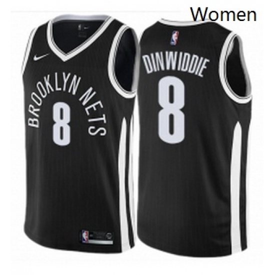 Home>NBA>Brooklyn Nets>Women>Womens Nike Brooklyn Nets 8 Spencer Dinwiddie Swingman Black NBA Jersey City Edition