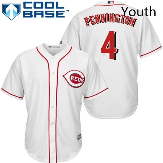 Home>MLB>Cincinnati Reds>Youth>Youth Majestic Cincinnati Reds 4 Cliff Pennington Replica White Home Cool Base MLB Jersey