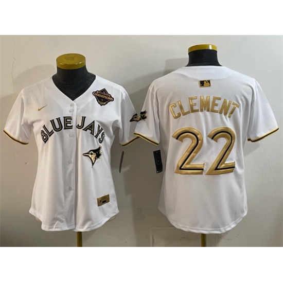 Home>MLB>Toronto Blue Jays>Youth>Youth Toronto Blue Jays 22 Ernie Clement White Gold 2025 American League Champions Limited Stitched Baseball Jersey