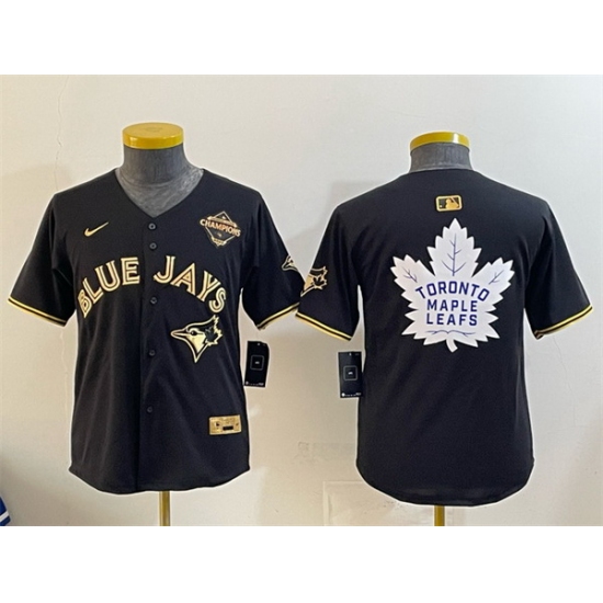 Home>MLB>Toronto Blue Jays>Youth>Youth Toronto Blue Jays 26 Leafs Black Gold 2025 American League Champions With White Leafs Logo Limited Stitched Baseball Jersey