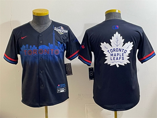 Home>MLB>Toronto Blue Jays>Youth>Youth Toronto Blue Jays 26 Leafs Navy 2025 World Series City Connect With White Leafs Logo Limited Stitched Baseball Jersey