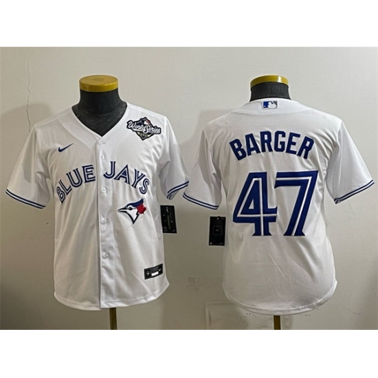 Home>MLB>Toronto Blue Jays>Youth>Youth Toronto Blue Jays 47 Addison Barger White 2025 World Series Cool Base Stitched Baseball Jersey
