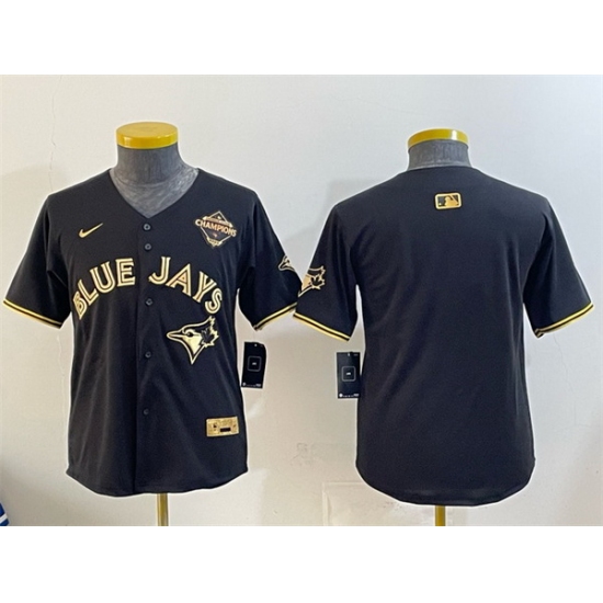 Youth Toronto Blue Jays Blank Black Gold 2025 American League Champions Limited Stitched Baseball Jersey