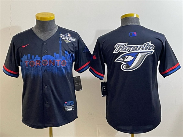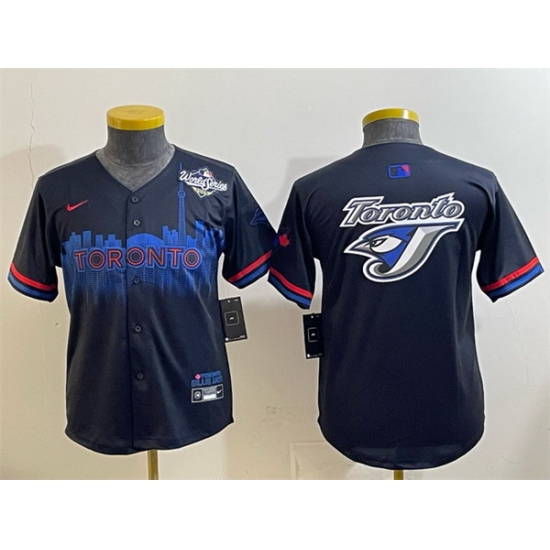 Home>MLB>Toronto Blue Jays>Youth>Youth Toronto Blue Jays Team Big Logo Navy 2025 World Series City Connect Limited Stitched Baseball Jersey